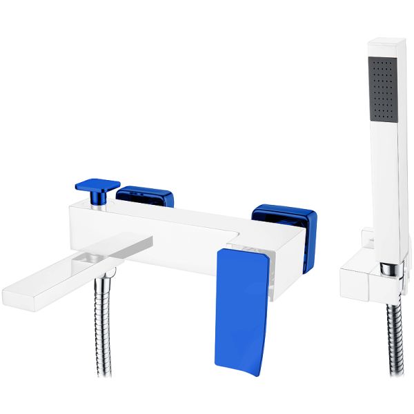 Смеситель для ванны и душа Boheme Q, с душевым гарнитуром, цвет белый/синий, 143-WUW.2