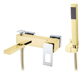 Смеситель Boheme Q 143-GCR для ванны с душем важнейший предмет сантехники в любой ванной комнате. Смеситель Boheme Q несомненно подойдет почти на любую ванну. Благодаря удобной конструкции однорычажных моделей, процесс регулировки температуры воды и интенсивность струи можно произвести одной рукой без особых усилий.Латунь из которой произведен смеситель Boheme Q 143-GCR отличается высокой прочностью и произведена без использования вредных компонентов. Излив смесителя Boheme 143-GCR длиной 17.05 см обеспечит идеальное и комфортное использовании при принятии водных процедур. Излив Boheme Q так же оснащен функцией вращения, что значительно упростит использование смесителя. Конструкция модели Boheme Q позволяет прекрасно установить смеситель на стену. Смеситель для ванны Boheme 143-GCR выполнен в стиле hi-tech, что превосходно прослеживается в его форме. Родина бренда Boheme – Италия, все смесители произведены с высокой точностью и грамотностью технологического процесса. Смеситель Boheme Q 143-GCR для ванны с душем принесет комфорт, как в компактную ванную комнату, так и в большой санузел.