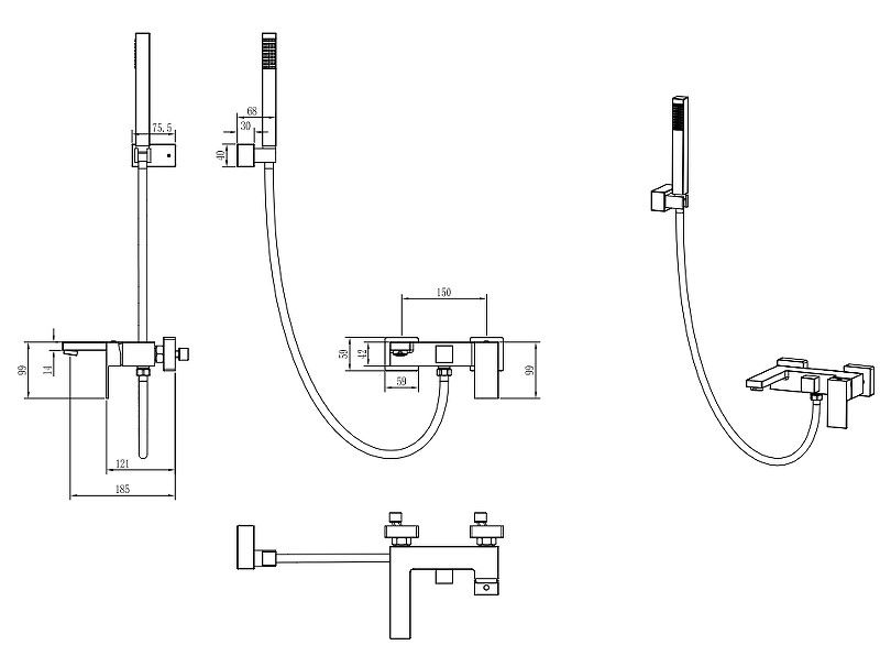 Смеситель для ванны Boheme Qubic 473-BR с душевым гарнитуром.Характеристики:Цвет: бронза.