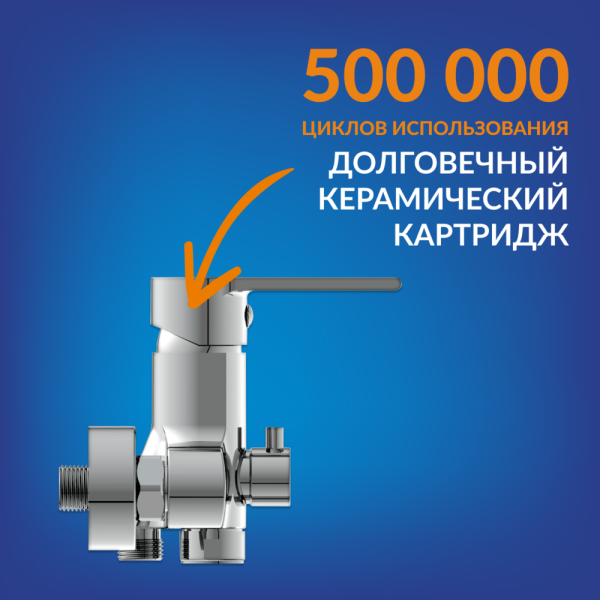 • Керамический картридж смесителя диаметром 35 мм выдерживает 500 000 циклов использования. Для семьи из четырех человек это 20 лет надёжной работы.
