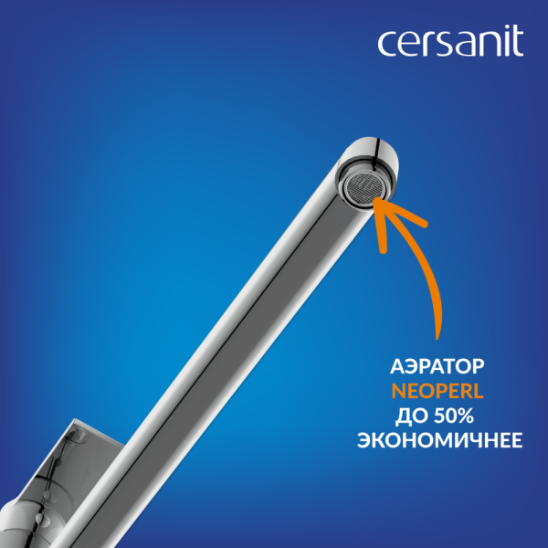 • Аэратор Neoperl позволяет экономить воду. Его конструкция с защитой от известковых отложений обеспечивает ровный поток без брызг.