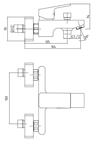 Смеситель для ванны E.C.A. Tiera 104802469EX хром купить