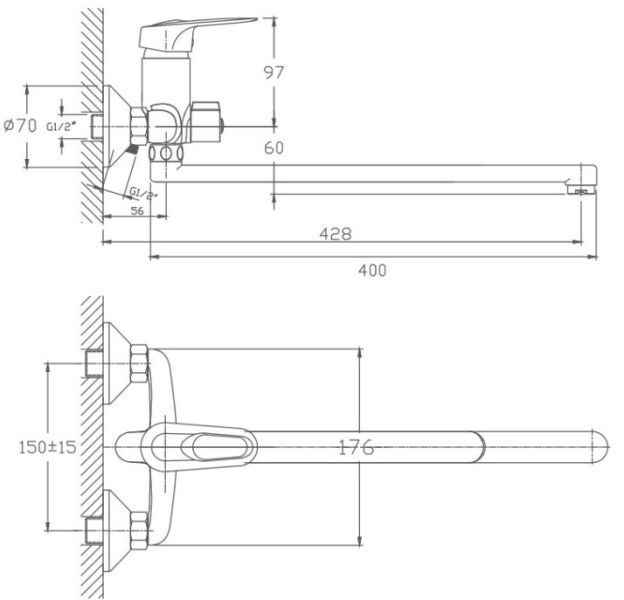 Керамический картридж 35 мм.Диаметр декоративных чашек 70 мм.Душевой гарнитур в комплекте.Межосевое расстояние (расстояние между выходом горячей и холодной трубы) 150 мм.Данное расстояние изменяется за счет входящих в комплект эксцентриков на 15 мм в большую или меньшую стороны.