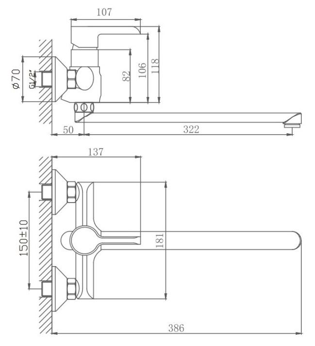 Керамический картридж 35 мм.Диаметр декоративных чашек 70 мм.Душевой гарнитур в комплекте.Межосевое расстояние (расстояние между выходом горячей и холодной трубы) 150 мм.Данное расстояние изменяется за счет входящих в комплект эксцентриков на 10 мм в большую или меньшую стороны.