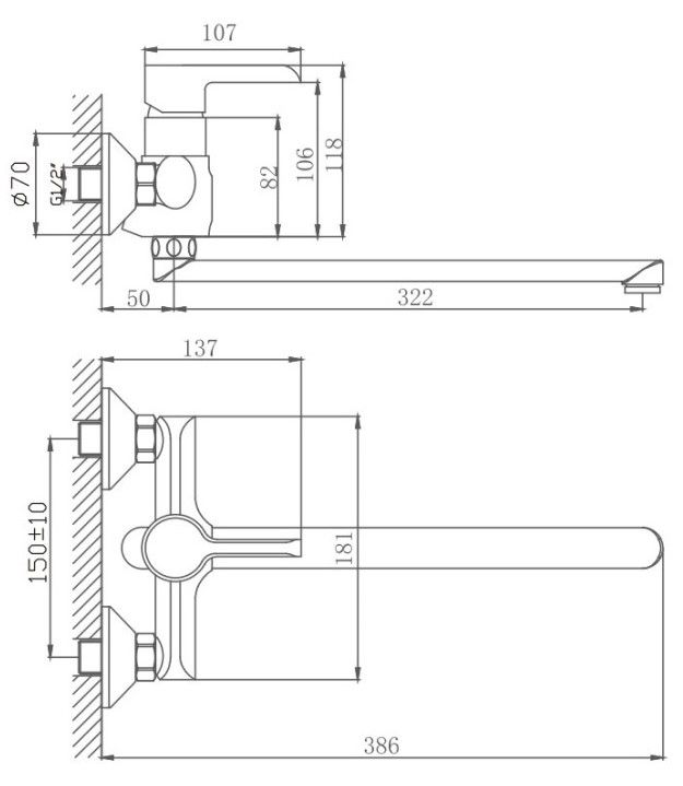 Керамический картридж 35 мм.Диаметр декоративных чашек 70 мм.Душевой гарнитур в комплекте.Межосевое расстояние (расстояние между выходом горячей и холодной трубы) 150 мм.Данное расстояние изменяется за счет входящих в комплект эксцентриков на 10 мм в большую или меньшую стороны.
