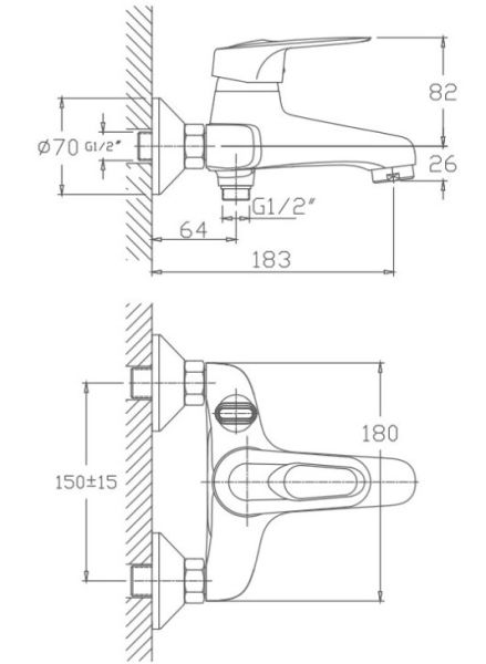 Керамический картридж 40 мм.Диаметр декоративных чашек 70 мм.Душевой гарнитур в комплекте.Межосевое расстояние (расстояние между выходом горячей и холодной трубы) 150 мм.Данное расстояние изменяется за счет входящих в комплект эксцентриков на 15 мм в большую или меньшую стороны.