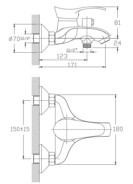 Керамический картридж 40 мм.Диаметр декоративных чашек 70 мм.Душевой гарнитур в комплекте.Межосевое расстояние (расстояние между выходом горячей и холодной трубы) 150 мм.Данное расстояние изменяется за счет входящих в комплект эксцентриков на 15 мм в большую или меньшую стороны.