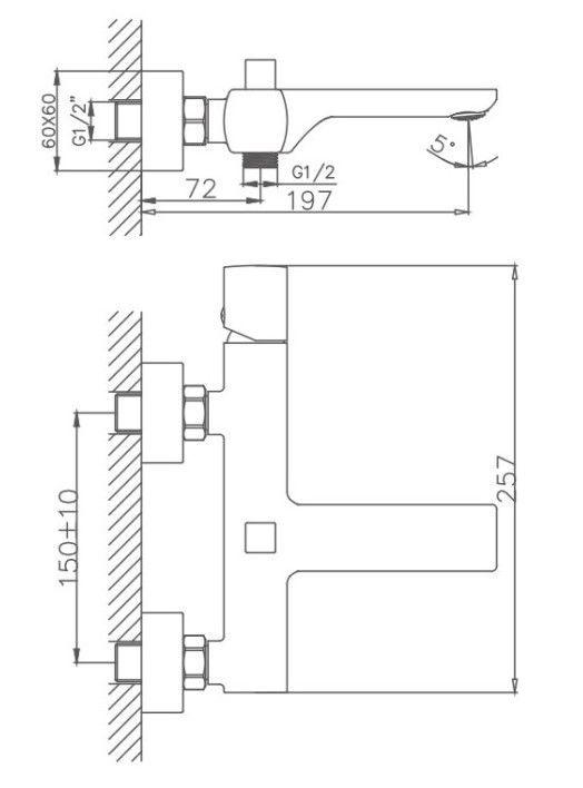 Керамический картридж 30 мм.Диаметр декоративных чашек 60 мм.Душевой гарнитур в комплекте.Межосевое расстояние (расстояние между выходом горячей и холодной трубы) 150 мм.Данное расстояние изменяется за счет входящих в комплект эксцентриков на 10 мм в большую или меньшую стороны.