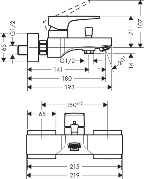 выступ 180 мм вид соединения: S-образные эксцентрики межосевое подключение: 150 мм ± 12 мм Тип струи смесителя: обычная струя расход воды при 3 барах: 22 л/мин керамический узел смешивания мин. рабочее давление 1 бар макс. рабочее давление: 10 бар регулируемое ограничение температуры с переключателем вакуумного типа внутренне безопасній против обратного потока подходит для проточных водонагревателей