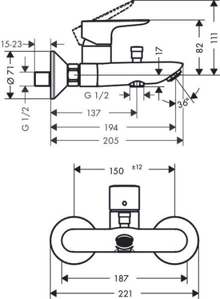 Смеситель для ванны Hansgrohe Talis E 71740140 шлифованная бронза