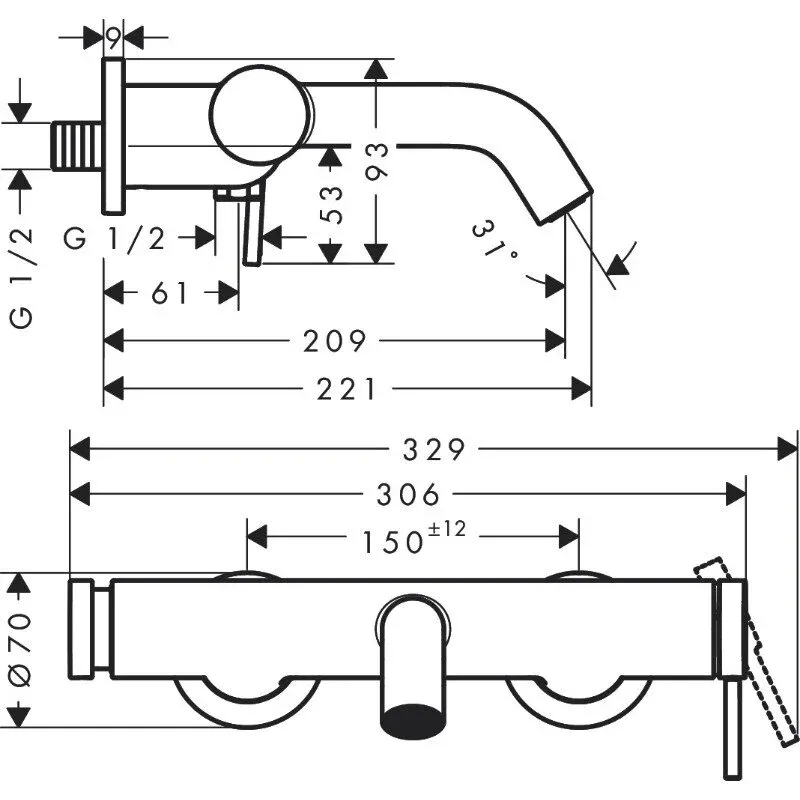 Смеситель для ванны Hansgrohe Tecturis S 73422670 черный