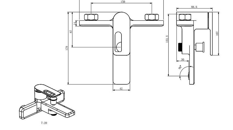 Смеситель для ванны и душа Black&White Gravity 9101С хром купить