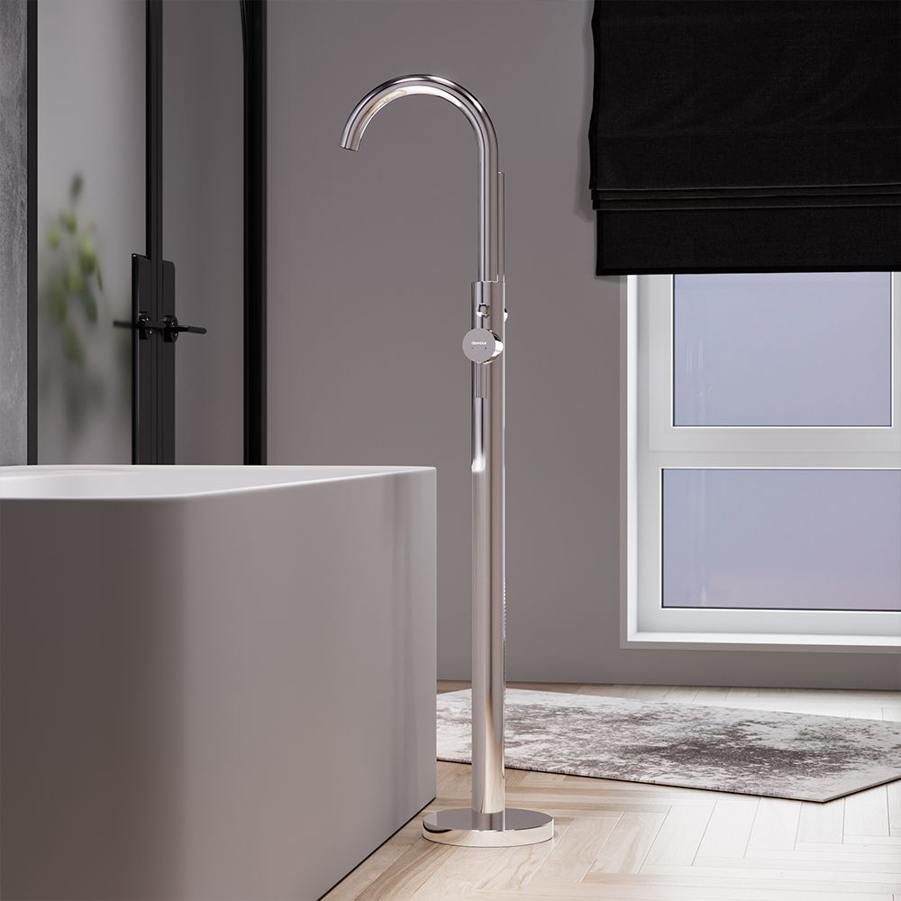 Смеситель для ванны и душа Damixa Scandinavian Pure 365000000 хромКорпус смесителя 1 шт.; излив 1 шт.; кронштейн крепления 1 шт.; комплект крепежный 1 шт.; ручной душ 1 шт.; шланг 1 шт.; гибкая подводка 2 шт.; декоративная розетка 1 шт.; инструкция изделия. Хром, высокий отдельностоящий смеситель для ванны и душа, ручка Stick