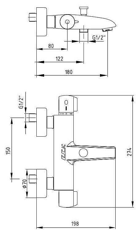 Смеситель для ванны и душа E.C.A предназначен для подачи горячей и холодной воды в ванных помещениях. Модель оснащена термостатическим картриджем, обеспечивающим постоянную температуру воды, что исключает ожоги. Изделие выполнено из латуни, которая отличается прочностью, долговечностью и устойчивостью к перепадам температуры.Особенности: