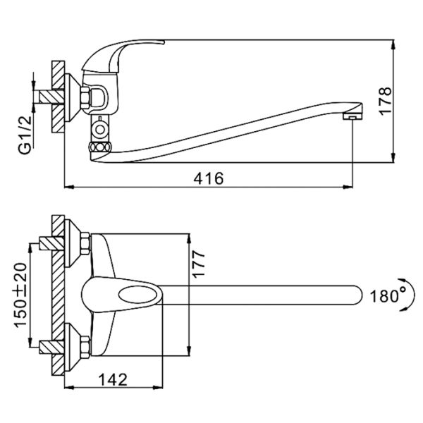 В комплекте:Душевой шланг 150 см, Душевая лейка, Держатель лейки, Комплект отражателей, Комплект эксцентриков