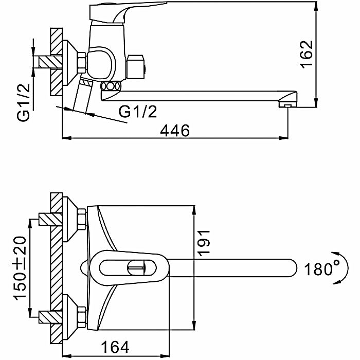 Способ монтажа:На два отверстия, Настенные
