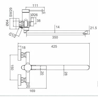 Длина излива, см:34.6