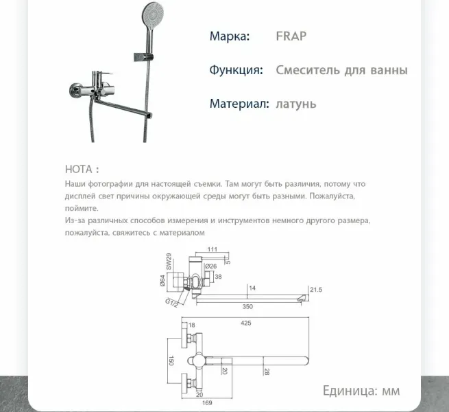Смеситель для ванны и душа Frap F2267 хром Смеситель для ванны и душа Frap F2267 хром Казань 8857.00 {old_price} FRAP