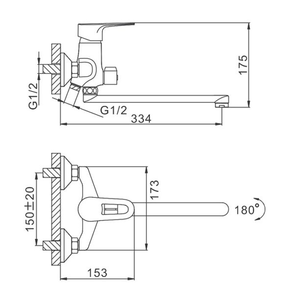 Способ монтажа:На два отверстия, Настенные
