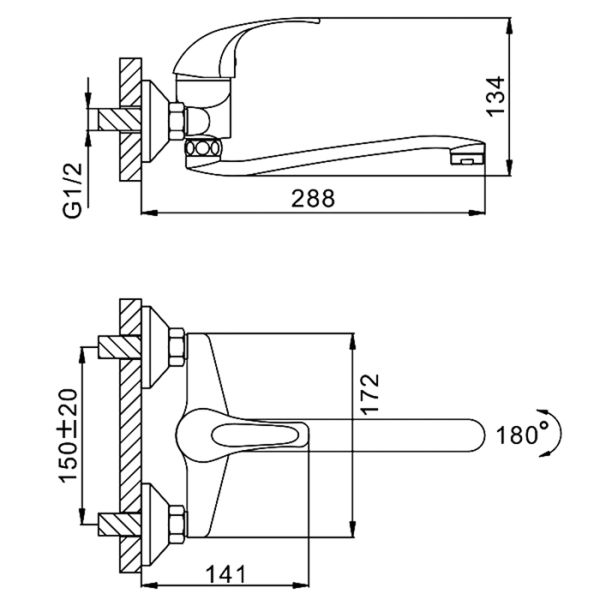 Способ монтажа:На два отверстия, Настенные