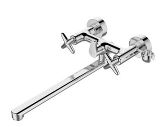 Продуманный синтез классического и современного дизайна элегантно воплощен в строгой форме смесителя для ванны из новой коллекции Acros. Фигурные ручки — модный тренд с тщательно проработанной эргономикой — не только обеспечивают удобную регулировку напора и температуры воды, но и выгодно выделяют данную коллекцию среди множества других. Наличие длинного (35 см) излива позволит увеличить функциональность полезного пространства ванны.