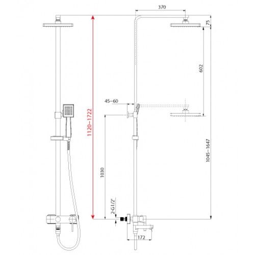 Артикул LM7004CСмеситель для ванны и душа с регулируемой высотой штанги, поворотным изливом и верхней душевой лейкой "Тропический дождь"