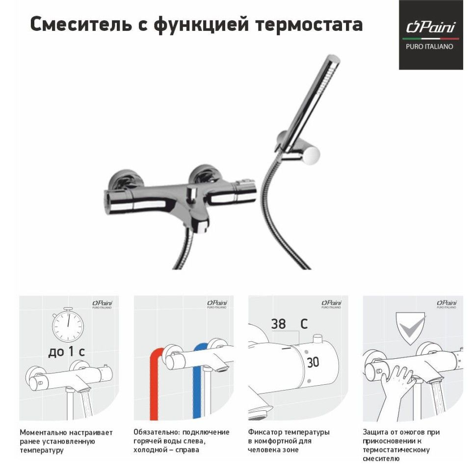 Смеситель для ванны Paini Arena 92CR105THKM с термостатом хром купить