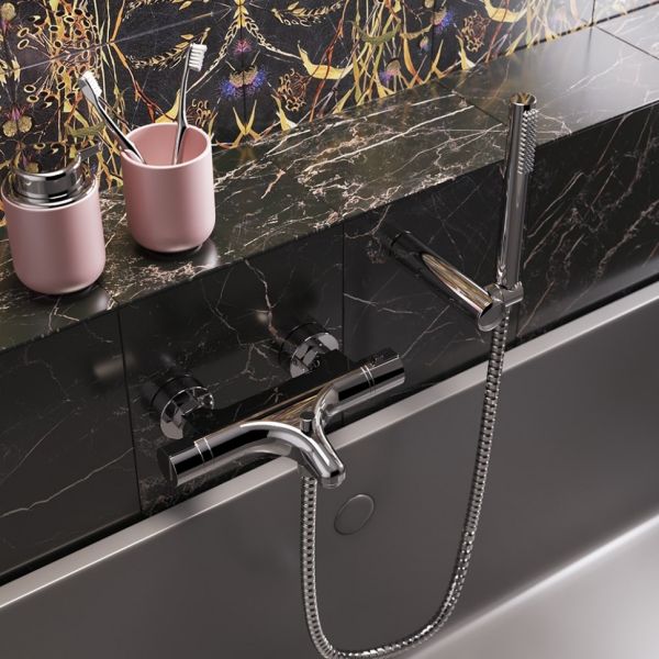 - Всегда комфортная температура и защита от ожогов за счет термостатического смесителя.