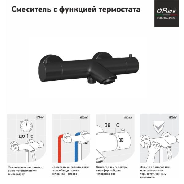 Смеситель для ванны Paini Cox 78PZ111TH с термостатом чёрный матовый Смеситель для ванны Paini Cox 78PZ111TH с термостатом чёрный матовый Казань 40080.00 {old_price} Paini