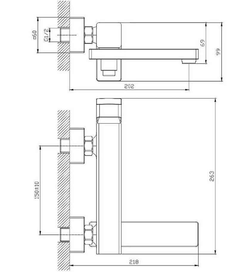 Смеситель для ванны Raglo R30.30.Цвет: хром.Материал: латунь.Управление: однорычажное.Механизм: керамический картридж.Излив: поворотный.Отверстия для монтажа: 2.Монтаж: на стену.