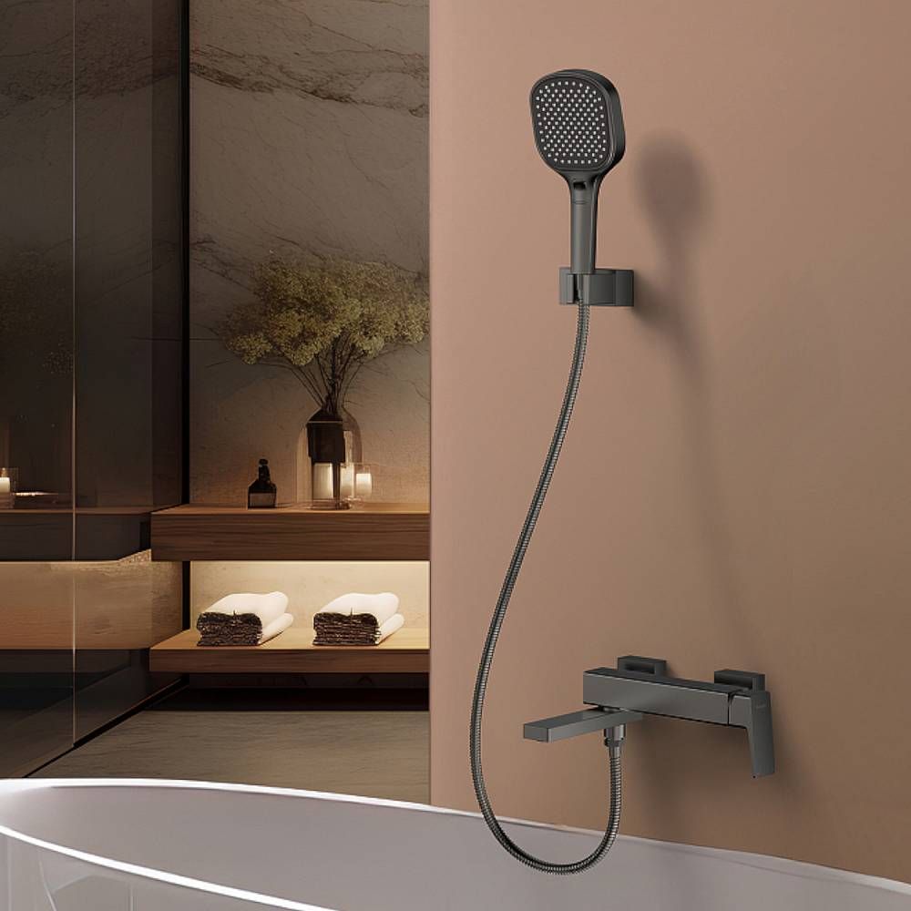 Смеситель для ванны Raglo R30.30.09.Цвет: графит.Материал: латунь.Управление: однорычажное.Механизм: керамический картридж.Излив: поворотный.Отверстия для монтажа: 2.Монтаж: на стену.