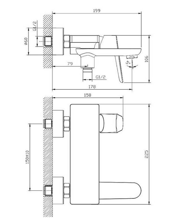 Смеситель для ванны Raglo R31.30.Цвет: хром.Материал: латунь.Управление: однорычажное.Механизм: керамический картридж.Излив: поворотный. Аэратор.Стандарт подводки: G 1/2.Отверстия для монтажа: 2.Монтаж: на стену.