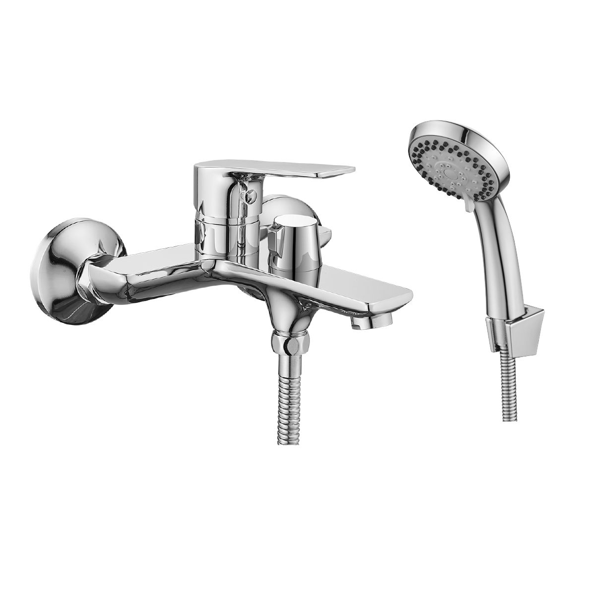 В комплекте поставки: смеситель для ванны, душевой гарнитур, присоединительная группа (эксцентрики с отражателями) для вертикального крепления.
