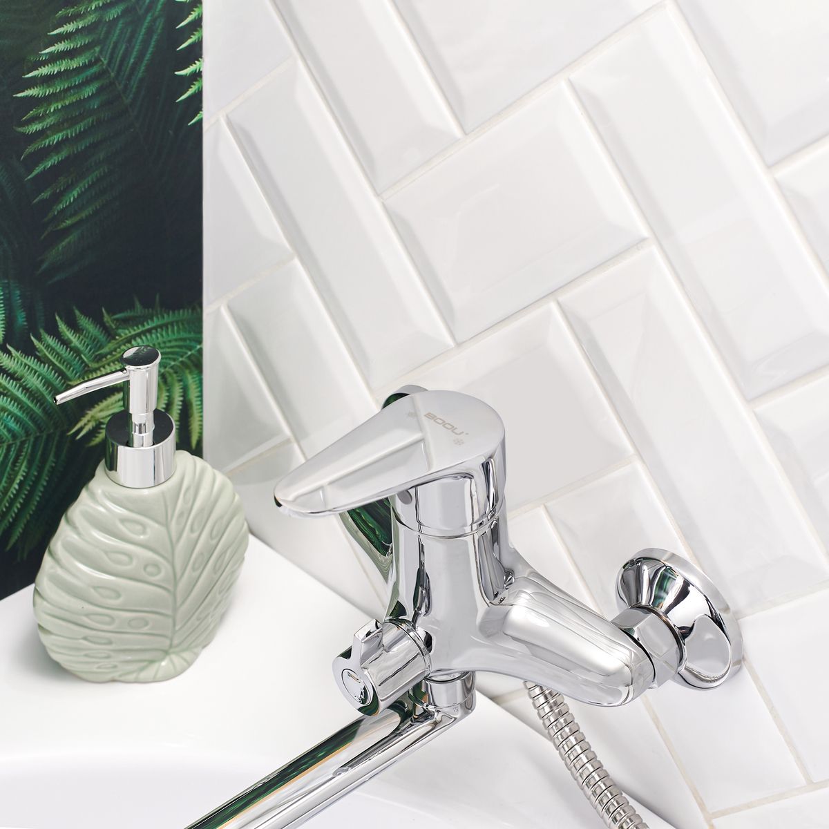 Однорычажный смеситель ТМ BOOU обладает лаконичным дизайном корпуса. Модель пре-красно впишется в интерьер современной ванной комнаты. Наличие длинного поворотного излива делает модель универсальной: она используется для обеспечения водой как ванны, так и раковины, актуально в небольшом санузле. В комплекте удобная трехрежимная лейка с гибким шлангом и настенный держатель.