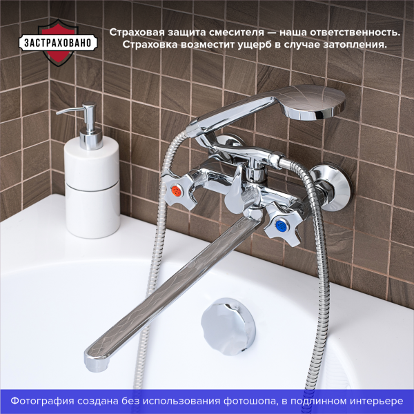 Оригинальный двуручковый смеситель для ванны с длинным изливом станет настоящим украшением ванной комнаты, подчеркнув ее собственный стиль. При производстве смесителей ТМ РМС используются только высококачественные материалы. Все модели проходят процесс гальванизации, что придает им большую износостойкость и улучшает антикоррозийные свойства. Хромированная поверхность не потеряет со временем свой изначальный вид, а уход за ней сводится к протиранию мягкой салфеткой. Установка смесителя крайне проста. Смесители РМС это сертифицированный продукт с 5-летней гарантией.В комплекте удобная лейка с гибким шлангом, настенный держатель, эксцентрики и отражатели.Смеситель для ванны с длинным изливомПоворотный прямой изливАэратор: пластиковыйПокрытие: хром