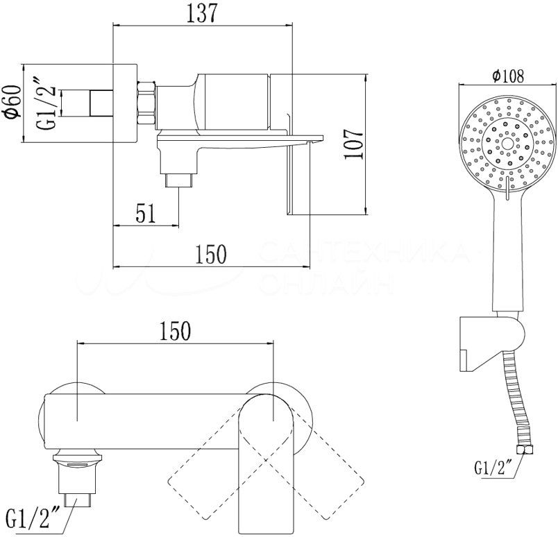 Назначение:для ванны/душа