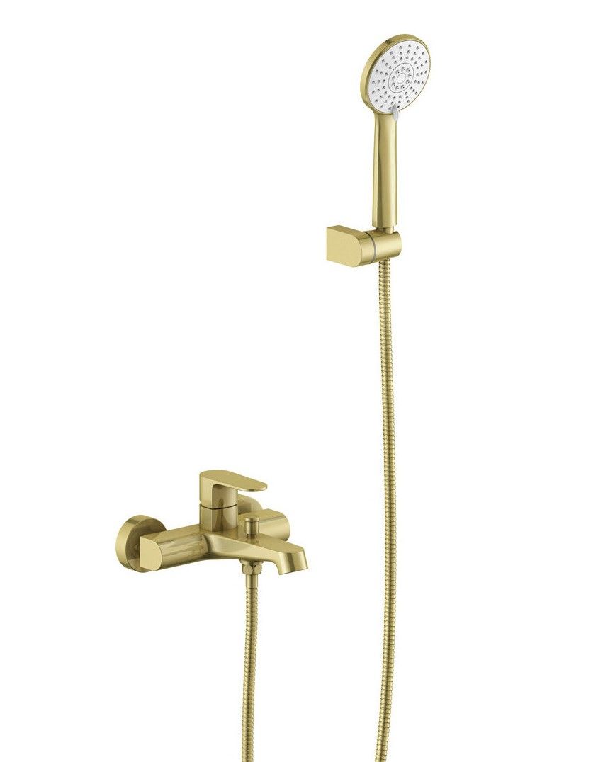 Смеситель для ванны с душевым набором Aquatek Оберон AQ1249BG шлифованное золото купить