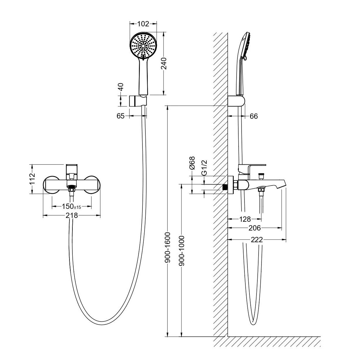 • Душевой гарнитур (лейка, шланг, настенный держатель для лейки)