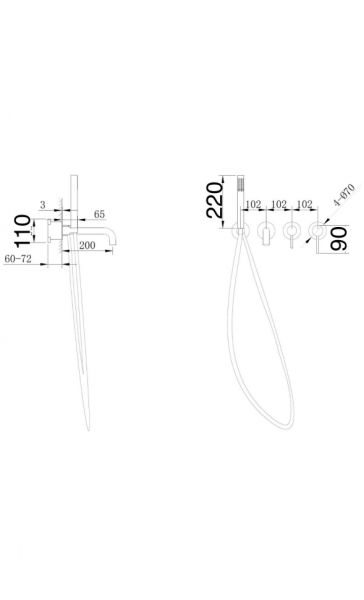 Смеситель для ванны с ручным душем Grocenberg GB5070BL Чёрный матовый купить