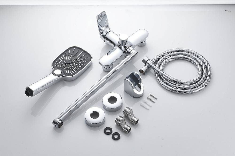Смеситель для ванны Shevanik S8522, хром.Душевой гарнитур в комплекте: да.Управление: рычажное.Монтаж: настенный.