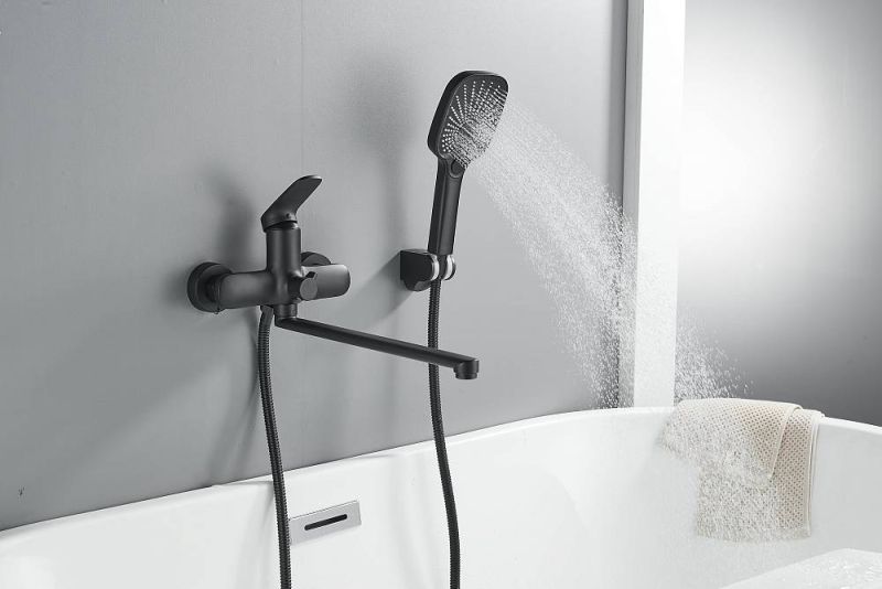 Смеситель для ванны Shevanik S8522H, черный.Душевой гарнитур в комплекте: да.Управление: рычажное.Монтаж: настенный.