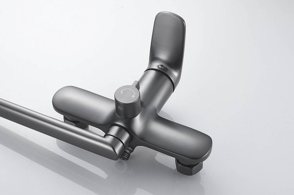 Смеситель для ванны Shevanik S8522T, оружейная сталь.Душевой гарнитур в комплекте: да.Управление: рычажное.Монтаж: настенный.