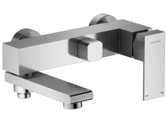 Смеситель для ванны Splenka S224.30.05 с душевым гарнитуром. Цвет: сатин. Материал: латунь. Управление: однорычажное. Механизм: керамический картридж. Излив: поворотный. Аэратор. Стандарт подводки: G 1/2. Отверстия для монтажа: 2. Количество режимов струи: 3. Монтаж: на стену.