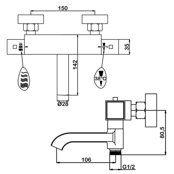 Термостатический смеситель для ванны Swedbe Mercury — эргономичное решение одного из представителей скандинавского рынка сантехники. Нужная температура настраивается всего один раз, а «умный» картридж поддерживает её далее без Вашего вмешательства. В модели предусмотрен ограничитель температуры 38 градусов. Функция незаменима для семей с детьми и пожилых людей, так как полностью исключает риск ожога.