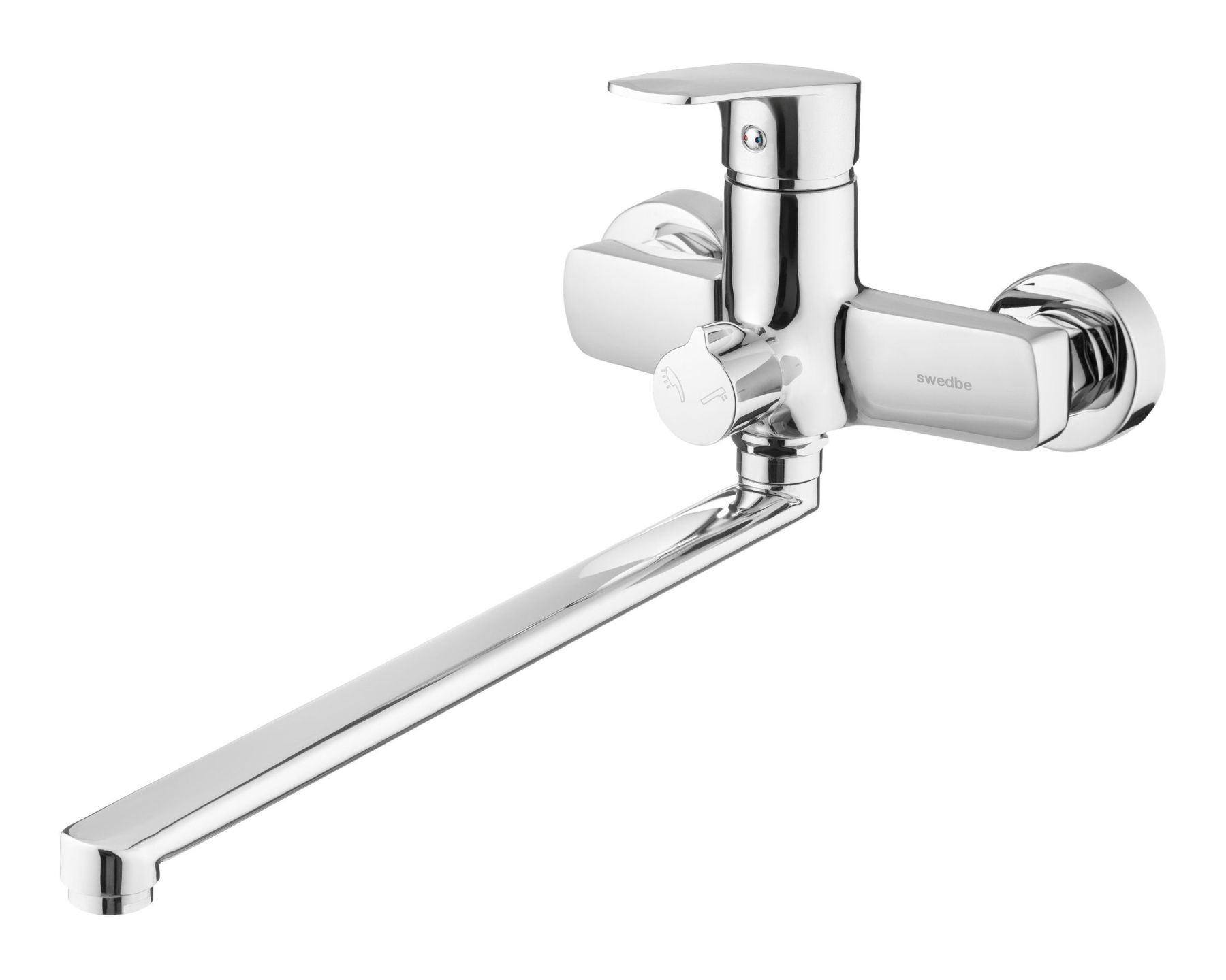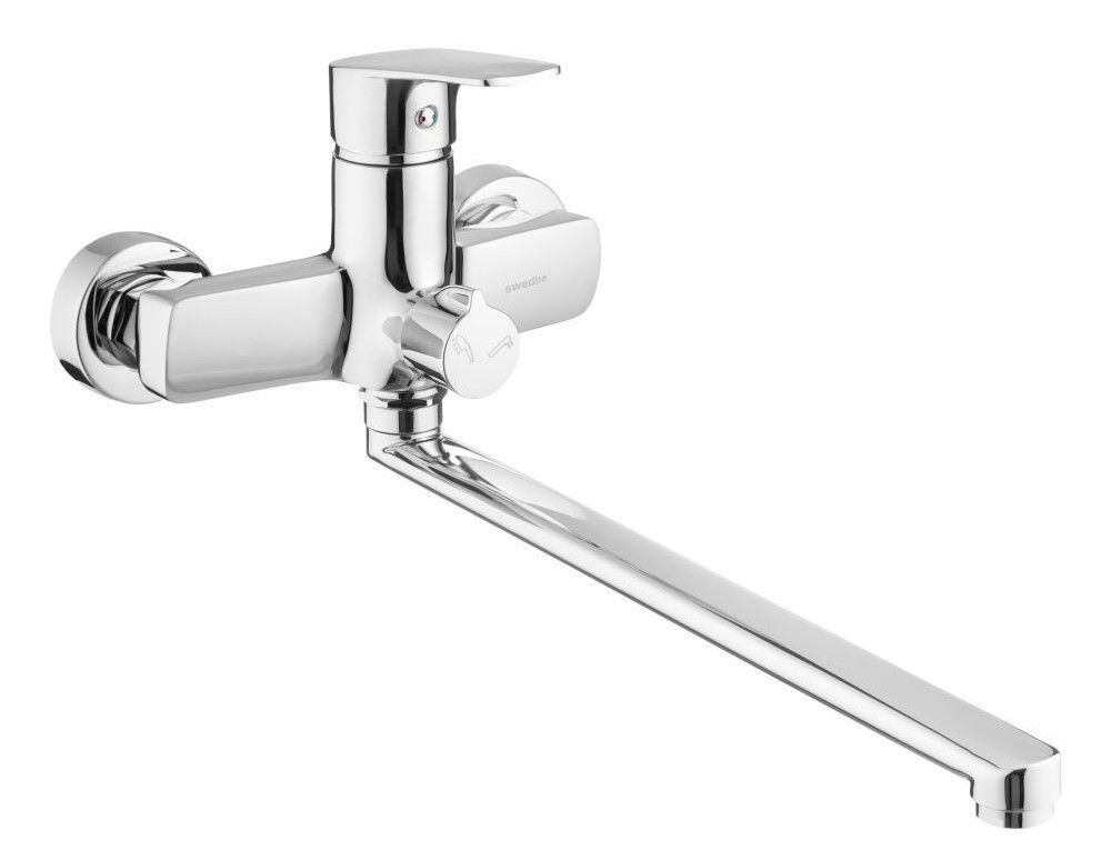 Шведский однорычажный смеситель для ванны с длинным Z-изливом Swedbe Venado — универсальное решение для небольшой по размерам ванной комнаты. Благодаря длине крана смеситель можно использовать как для наполнения ванны, так и для умывания в раковине. Дивертер с фиксацией предоставляет возможность бесперебойно принимать душ, не допуская самопроизвольного перенаправления воды из лейки в кран при скачках давления в водопроводной системе. Излив сделан без единого шва по сложнейшей технологии, которая гарантирует стойкость к химическим и механическим воздействиям, исключает возможность протечки.