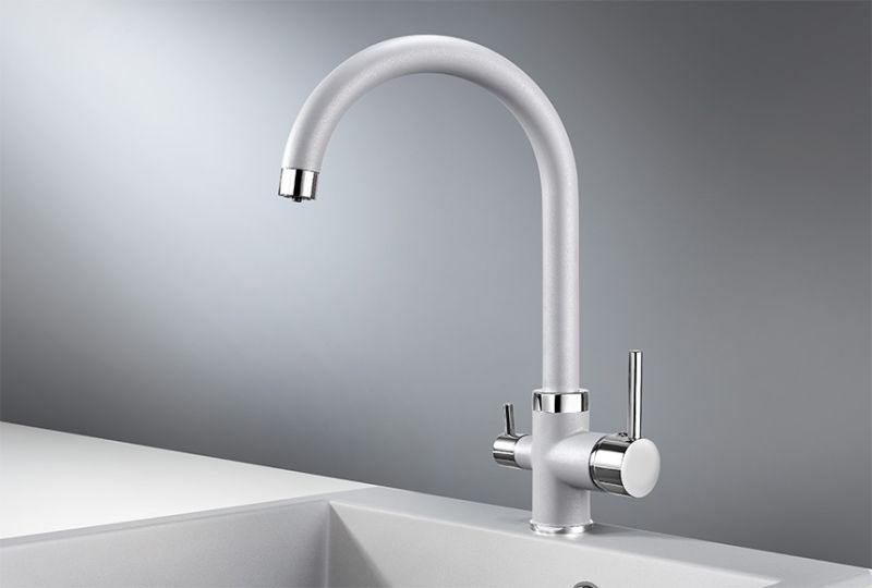 Смеситель для кухонной мойкиЦветовая гамма: Алюминиум, Классик, Антик, Песок, Пирит, Базальт, Арктик, Эспрессо, Графит, Черный, ШварцГибкая подводка (3 шт.); набор для крепления; прокладки уплотнительные (2 шт.); аэраторГарантийный срок от производителя - 5 лет