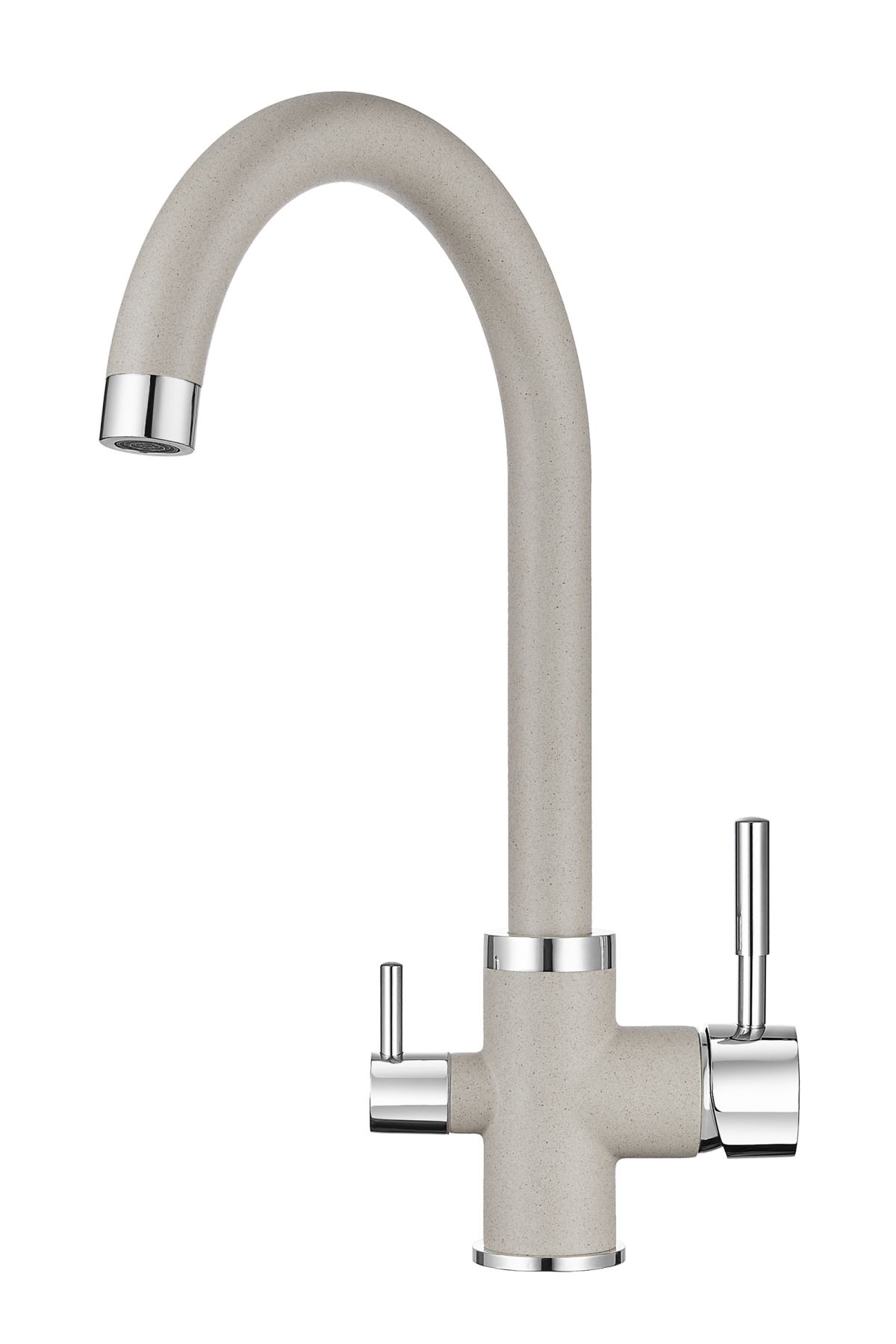 Смеситель для кухонной мойкиЦветовая гамма: Алюминиум, Классик, Антик, Песок, Пирит, Базальт, Арктик, Эспрессо, Графит, Черный, ШварцГибкая подводка (3 шт.); набор для крепления; прокладки уплотнительные (2 шт.); аэраторГарантийный срок от производителя - 5 лет