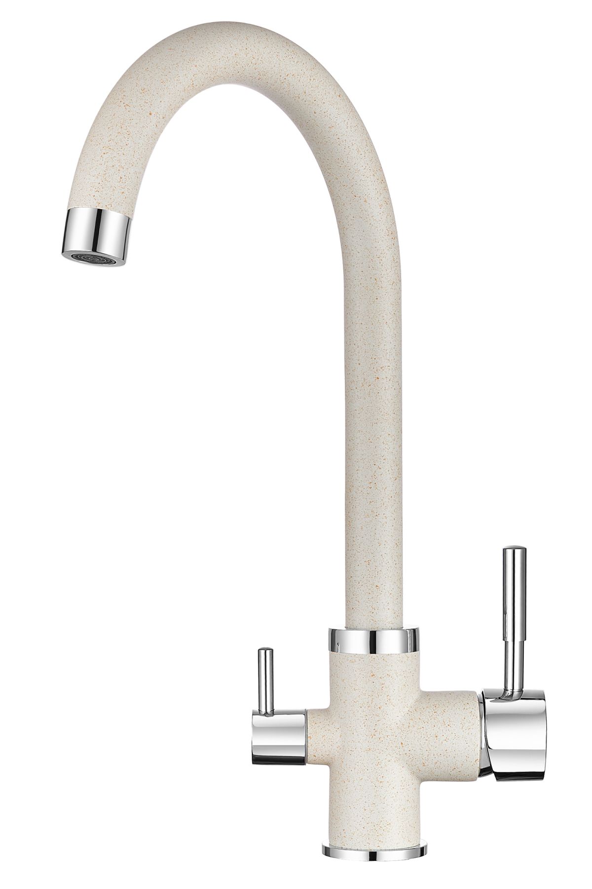 Смеситель для кухонной мойкиЦветовая гамма: Алюминиум, Классик, Антик, Песок, Пирит, Базальт, Арктик, Эспрессо, Графит, Черный, ШварцГибкая подводка (3 шт.); набор для крепления; прокладки уплотнительные (2 шт.); аэраторГарантийный срок от производителя - 5 лет