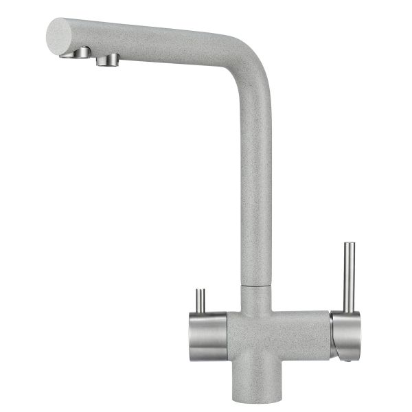Смеситель для кухонной мойкиЦветовая гамма: Алюминиум, Классик, Антик, Песок, Пирит, Базальт, Арктик, Эспрессо, Графит, Черный, ШварцГибкая подводка (3 шт.); набор для крепления; прокладки уплотнительные (2 шт.); аэраторГарантийный срок от производителя - 5 лет