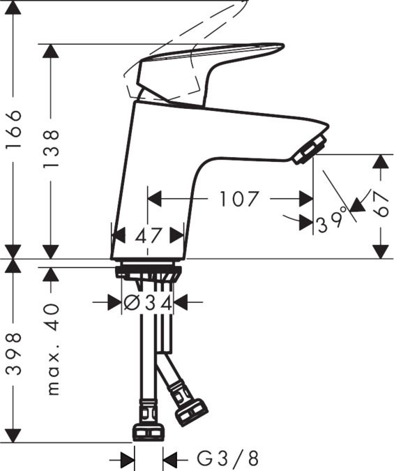 Смеситель для раковины 70, однорычажный, без сливного набора